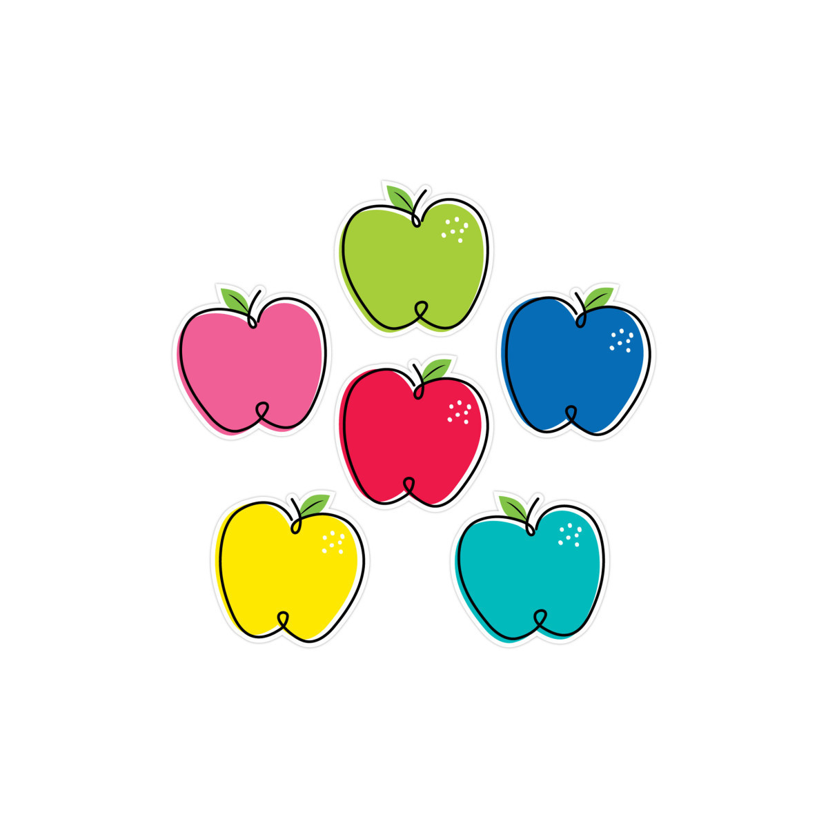 Add a cheerful touch to your classroom or home with these vibrant Doodle Apples 6" Designer Cut-Outs. Featuring whimsical designs and bright colors, these versatile cut-outs are ideal for a variety of creative uses. Whether decorating bulletin boards, crafting projects, or adding seasonal flair, these apples are perfect for enhancing any space. Use them as game pieces, invitations, memory cards, or labels for doors and cubbies. Each pack includes 36 pieces, with six each of six unique designs, offering plenty of possibilities to brighten your environment.