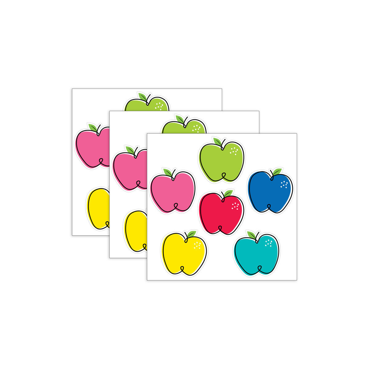 Add a cheerful touch to your classroom or home with these vibrant Doodle Apples 6" Designer Cut-Outs. Featuring whimsical designs and bright colors, these versatile cut-outs are ideal for a variety of creative uses. Whether decorating bulletin boards, crafting projects, or adding seasonal flair, these apples are perfect for enhancing any space. Use them as game pieces, invitations, memory cards, or labels for doors and cubbies. Each pack includes 36 pieces, with six each of six unique designs, offering plenty of possibilities to brighten your environment. Sold as 3 packs for a total of 108 cut-outs.