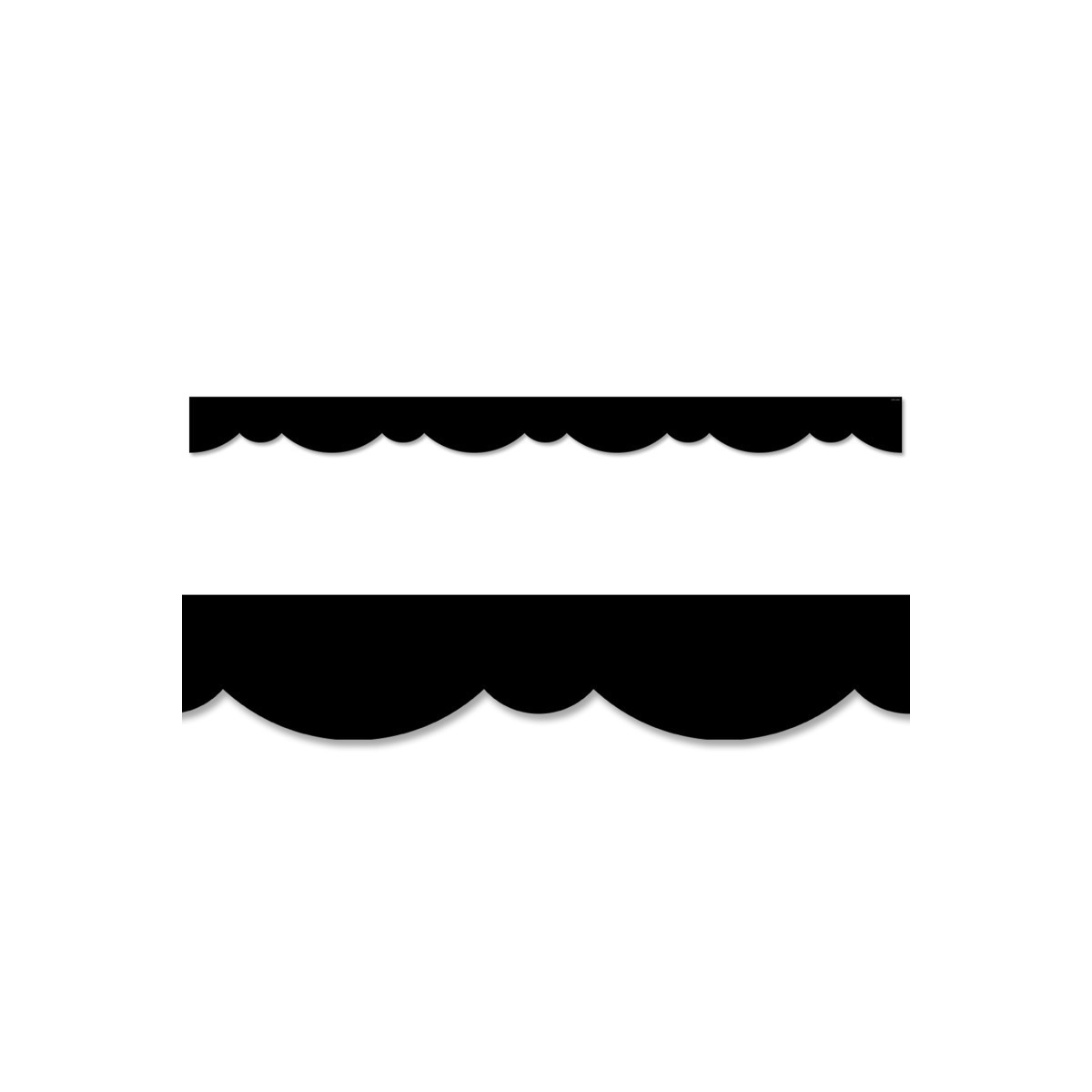 A fresh twist on a solid black border! This Black Stylish Scallops Border features a playful double scallop design to create an easy way to trim any bulletin board. Great for any type of school setting at any grade level! This bulletin board border can be used alone to create a basic look or layered with another border for a more designer look. Measures 2-3/4" wide. Each pack includes 35 feet.