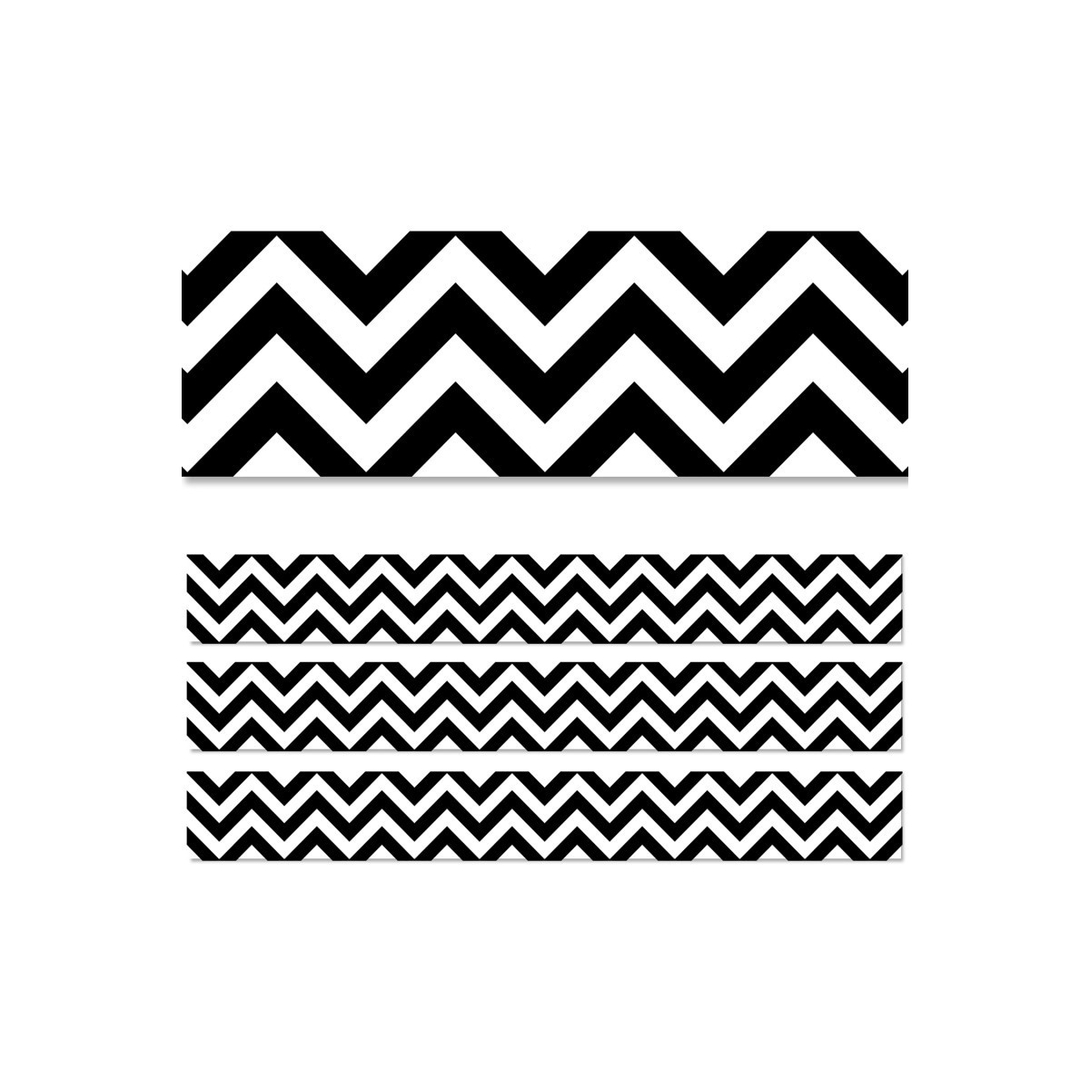 Get inspired with Chevron! The simple Black & White color and modern design of this Black Chevron Border will be a sophisticated trim on any bulletin board or classroom display. The sleek design will add eye-catching flair to bulletin boards, doors, offices, and common areas! Mix and match this color with other Designer Décor Collections. These EZ borders come in smaller strips, which are easier to manage and store. Each pack comes with enough borders to complete 2 full bulletin boards. Strips measure 3" x 24". Each pack includes 24 strips (48 feet). Sold as 3 packs for a total of 72 strips (144 feet).