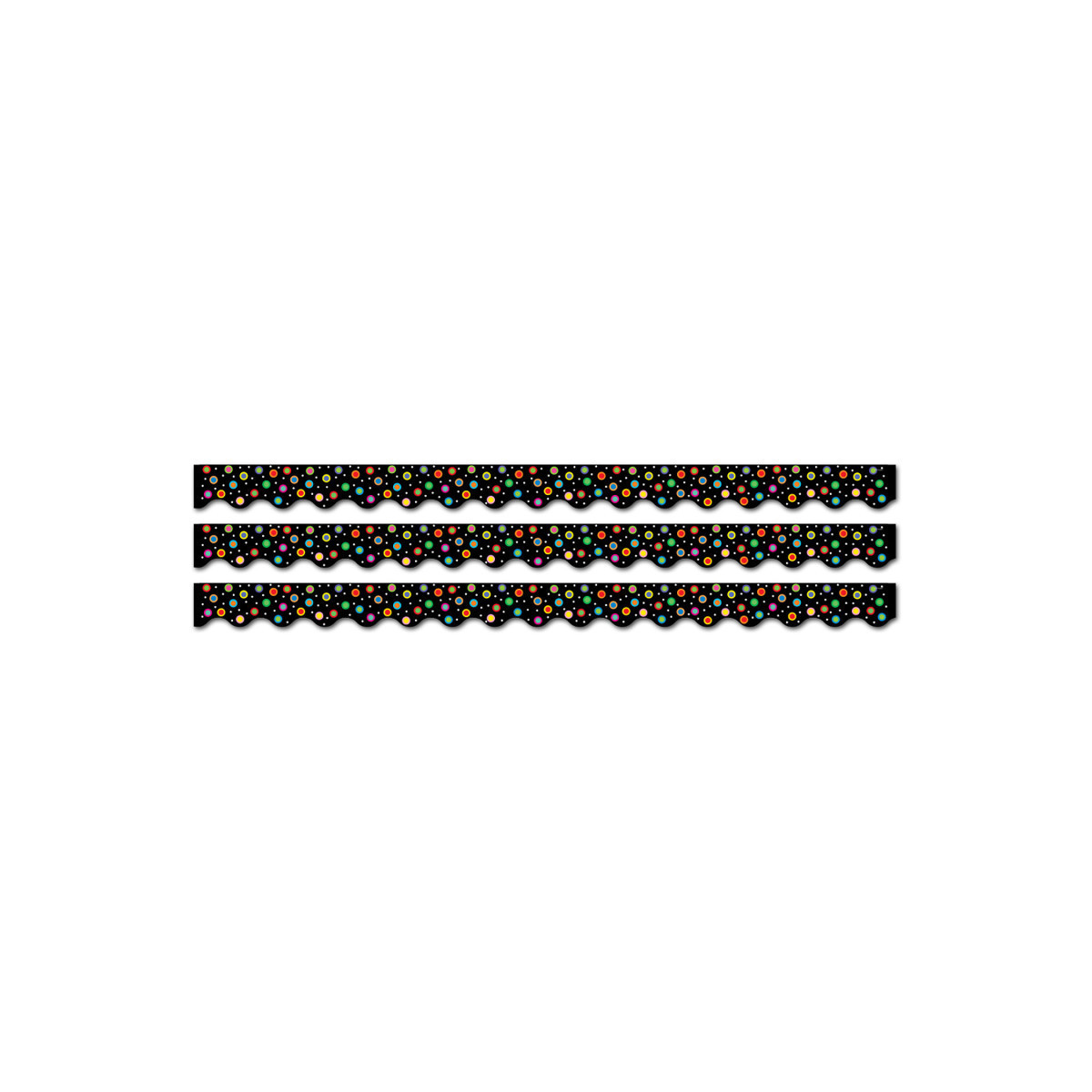 EYE-CATCHING DESIGN – This border's colorful dots on a black background creates a dazzling look that will add vibrancy to any bulletin board display.