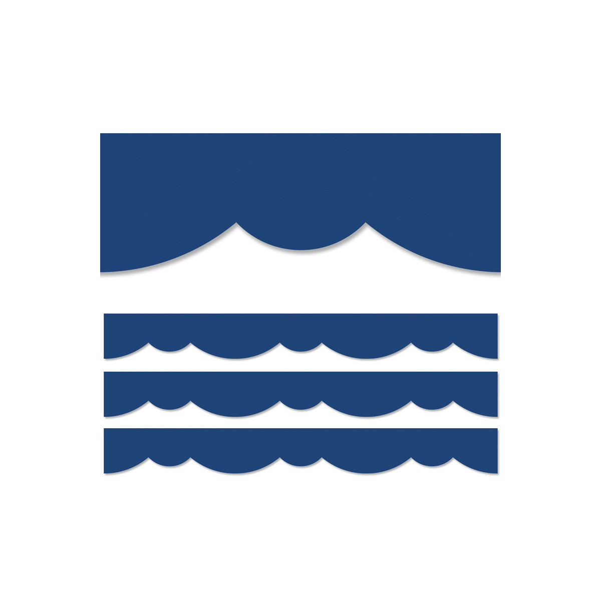 A fun, fresh twist on a solid blue border! This Blue Stylish Scallops Border features a playful double scallop design to create a neat and easy way to edge any bulletin board or classroom display. Great for any type of school setting at any grade level. Also great for use on bulletin boards in an office, a church, a college dorm, or a senior living residence. With its versatile scallop design, this bulletin board border can be used alone to create a basic look or layered with another border for a more designer look. The vibrant blue color is perfect for use on seasonal and holiday displays for Christmas, Hanukkah, and 4th of July. These EZ borders come in smaller strips, which are easier to manage and store. Each pack comes with enough borders to complete 2 full bulletin boards. Strips measure 2-3/4" x 24". Each pack includes 24 strips (48 feet). Sold as 3 packs for a total of 72 strips (144 feet).