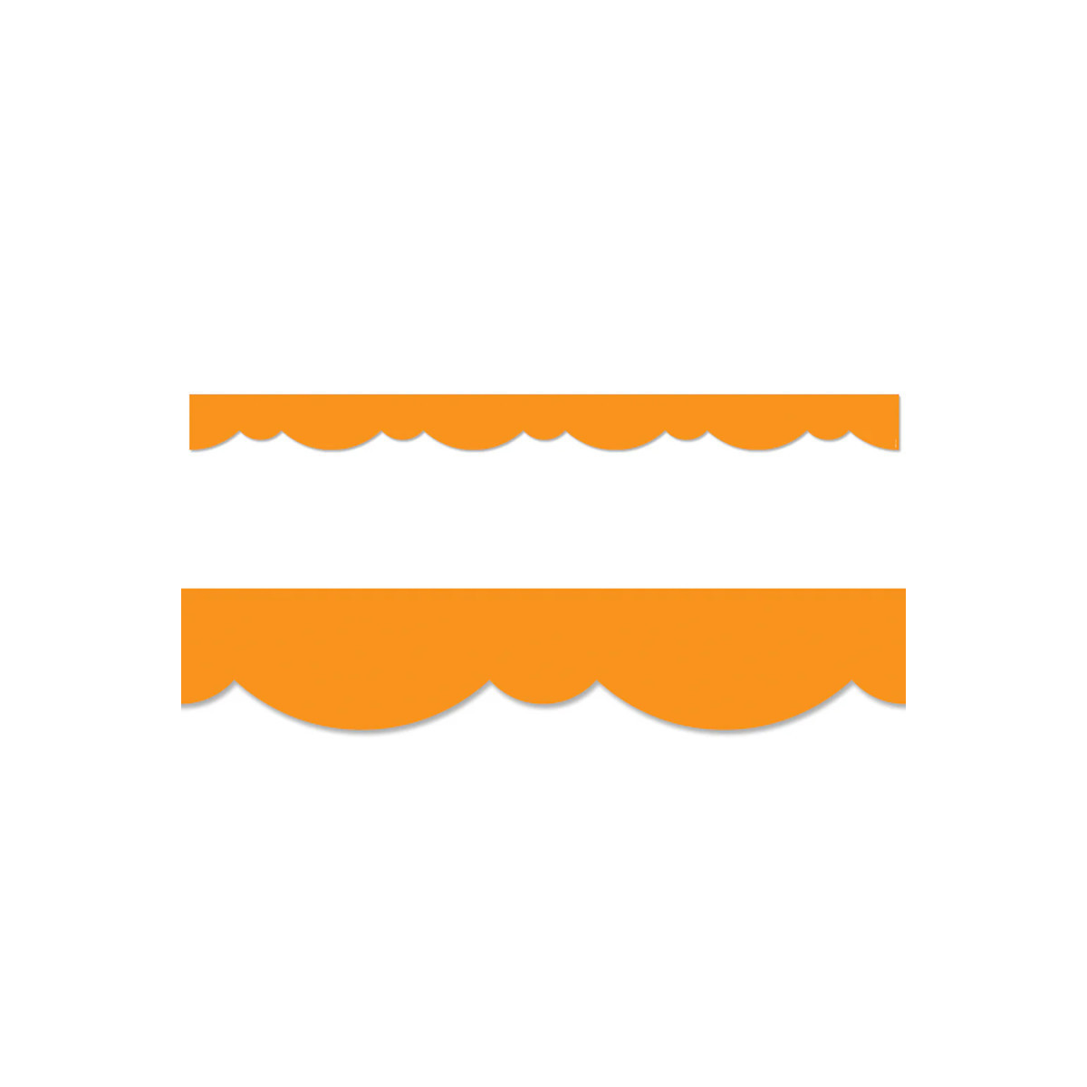 A fun, fresh twist on a solid border! This Orange Stylish Scallops EZ Border features a playful double scallop design to create a neat and easy way to edge any bulletin board or classroom display. Also great for use on bulletin boards in an office, a church, or a college dorm. With its versatile scallop design, this bulletin board EZ border can be used alone to create a basic look or layered with another border for a more designer look. These new EZ borders come in smaller strips, which are easier to manage and store. Each package comes with enough borders to complete 2 full bulletin boards. Use this orange EZ border for seasonal and holiday displays for summer, fall, Halloween, and Thanksgiving. Each pack includes 24 strips measuring 2-3/4" x 24" for a total of 48 feet.