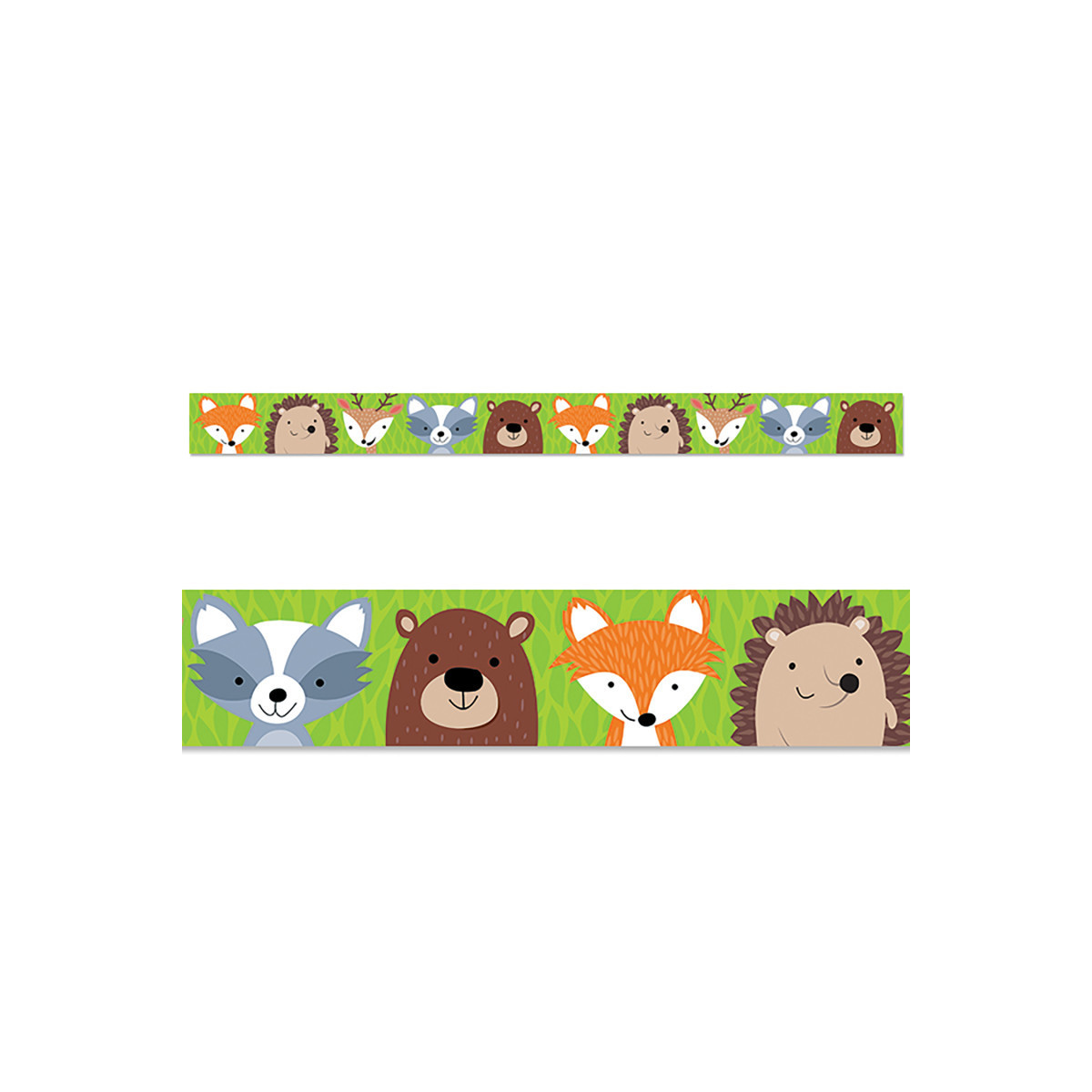 - WOODLAND FRIENDS THEME – This border features cute woodland creatures (owl, fox, hedgehog, rabbit, raccoon, deer, and bear) that are perfect for an early childhood woodland bulletin board.