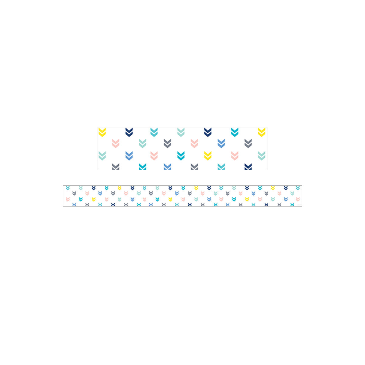 This Calm & Cool Colorful Mini Chevrons EZ Border is a must-have for any classroom. With its charming pattern and fresh colors, this EZ border can be used alone to create a basic look or layered with another border for a more designer look. Due to its neutral color and versatility, it is perfect for use on bulletin boards in a wide variety of school, office, and church settings. These EZ borders come in smaller strips, which are easier to manage and store. Each package comes with enough borders to complete 2 full bulletin boards. Each pack includes 24 strips, each measuring 3" x 24", for a total of 48 feet per pack.