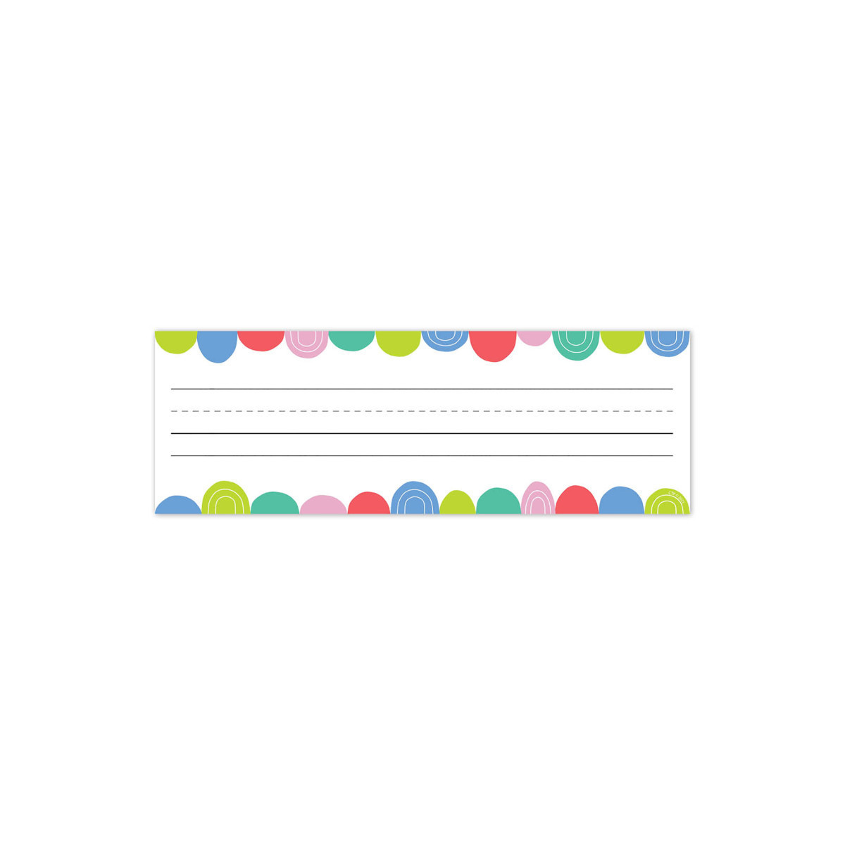 These Rainbow Drops Name Plates can be used to personalize student desks, cubbies, seats at the table, take-home bags, classroom cabinets, folders, and more! Student name plates are great for use in the classroom, at a day care, at a church, or at a preschool. The colorful design makes them versatile for use in a variety of classroom displays and themes. Name plates measure 9-1/2" x 3-1/4". Each pack includes 36 name plates.