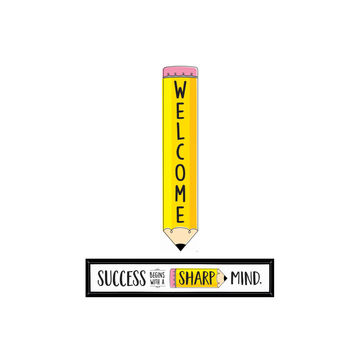 Use this Doodle Pencil Welcome Banner anywhere you need a bright message or bit of inspiration! This versatile 2-sided banner features a different message on each side—Side 1: "Welcome" and Side 2: "Success Begins with a Sharp Mind." It can be used during back-to-school to welcome students and parents then flipped over for a motivational message for the rest of the school year. The bright design and positive messages make this banner perfect to use in so many places—the classroom, home, a school office, a hallway, a daycare, and more! The fully assembled banner measures over 3 feet wide! Banner measures 39" x 8".