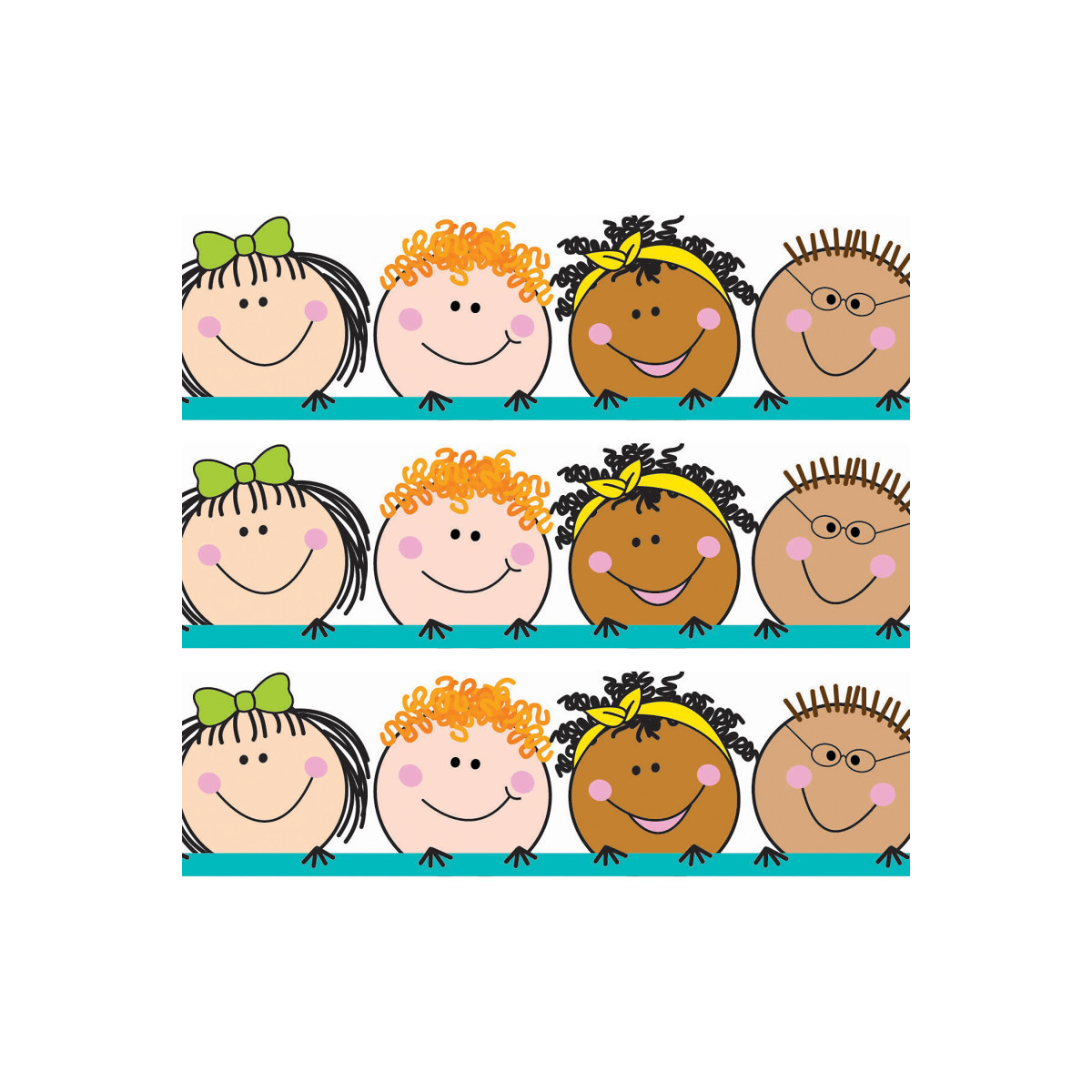 Celebrate diversity with the beautiful faces of the world's children depicted on this Stick Kids Border. Great for multicultural displays and for fostering an inclusive environment. These new EZ borders come in smaller strips, which are easier to manage and store. Each package comes with enough borders to complete 2 full bulletin boards. Each pack includes (24) 3" x 24" strips for a total of 48 feet per package. Sold as 3 packs for a total of 72 strips (144 feet).