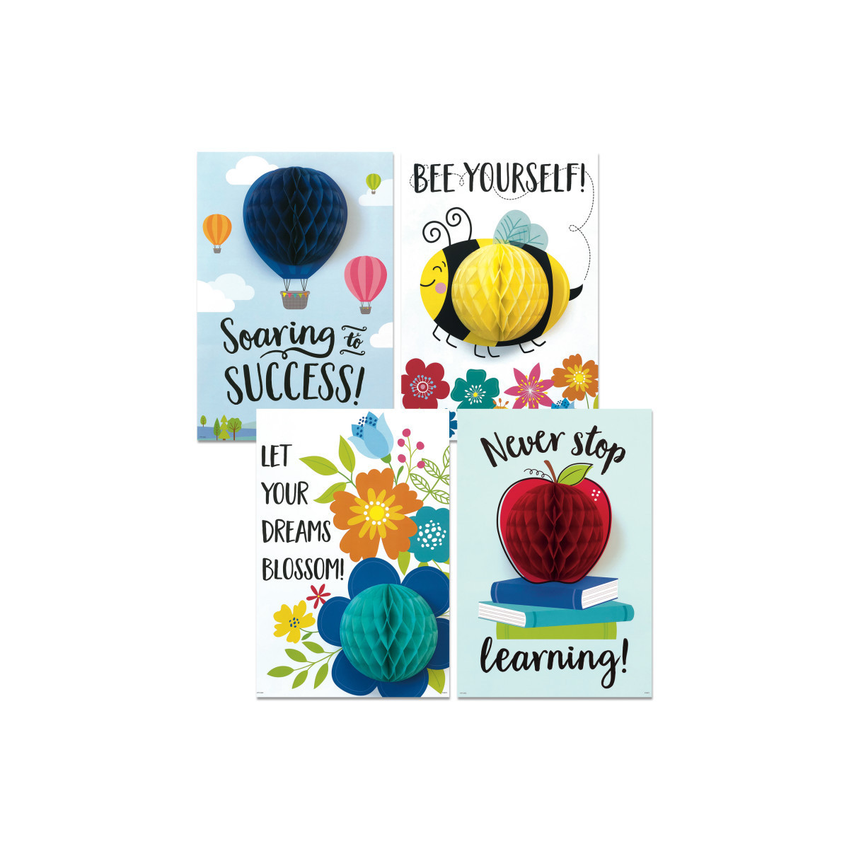 The motivational messages on the posters in this 3D POP! Positive Mindset Inspire U 4-Poster Pack will inspire students of all ages. The 3-dimensional feature of these posters make them fun to display in a school, church, daycare, or anywhere a little inspiration is needed.