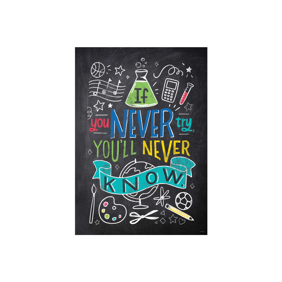 Motivate and educate your students with the powerful messages on this stylish poster. Inspire young learners to try something new by displaying this poster, which features the phrase, "If you never try, you'll never know." Measures 13-3/8" x 19".