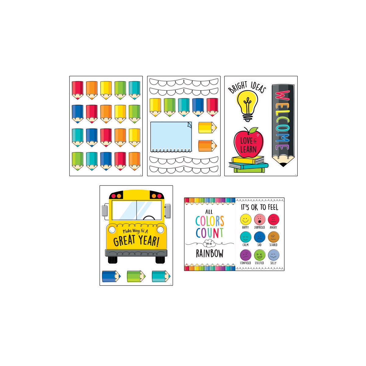 Bulletin board set also comes with an instructional guide that includes display ideas for welcoming students and ways to use the bulletin board to promote goal setting, explore the characteristics of good learners, celebrate diversity and inclusion, and develop ways of handling emotions.