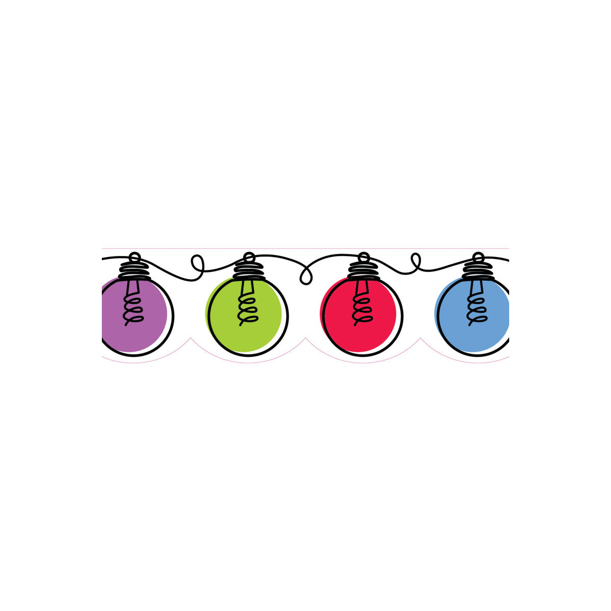 Bring the festive look of a backyard party to your bulletin board displays with the simulated strand of bright bulbs featured on the Colorful Doodle Lights EZ Border.