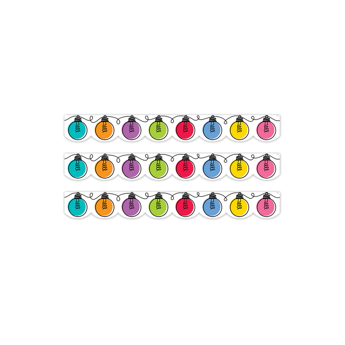 Bring the festive look of a backyard party to your bulletin board displays with the simulated strand of bright bulbs featured on the Colorful Doodle Lights EZ Border.