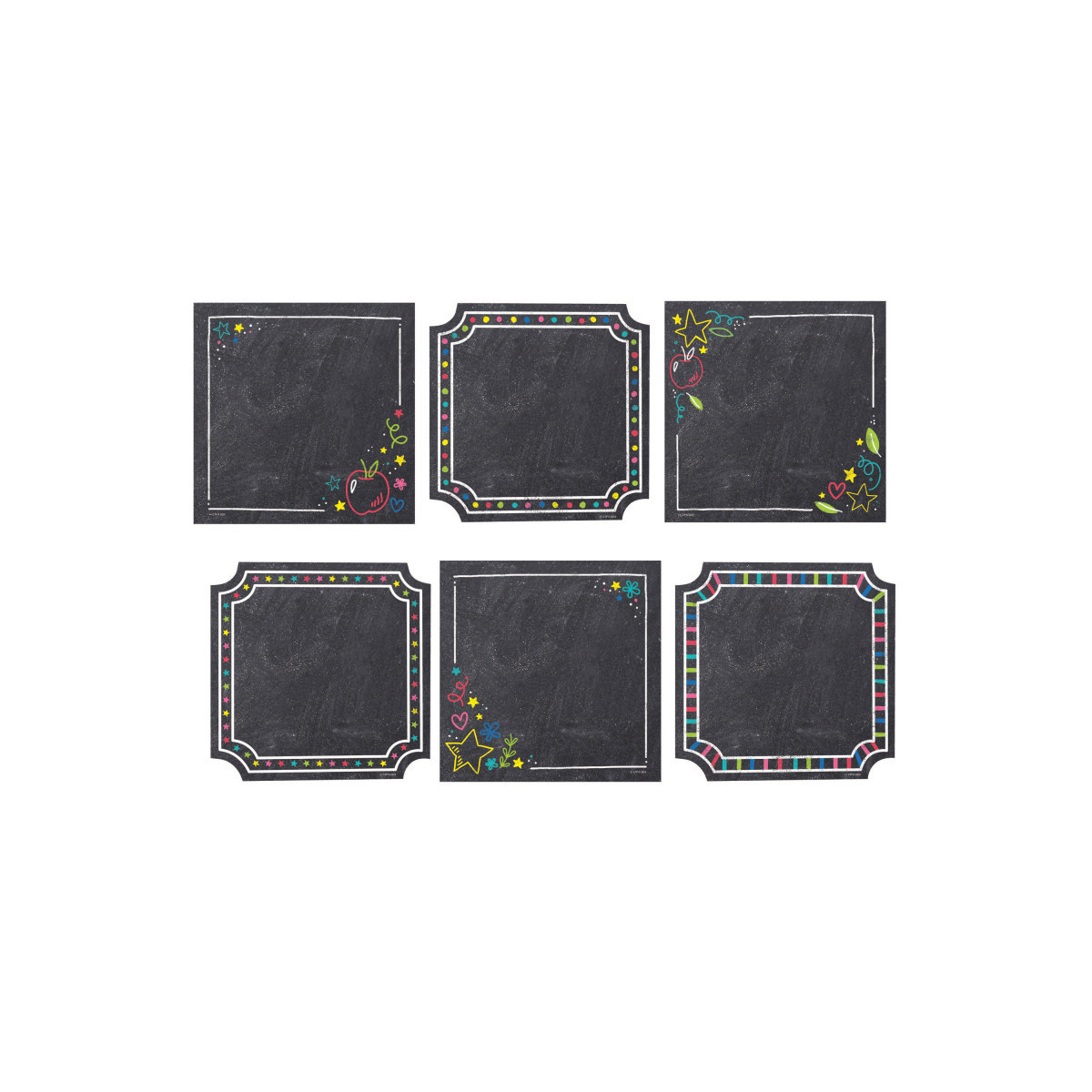 Create stylish messages and more with the Colorful Chalk Cards 6" Designer Cut-Outs. Featuring a chalkboard-style background with colorful accents around the edges, these cut-outs can be used with chalk markers (not included) for crafting projects, displaying photos, making covers for mini books, making flash cards, creating small classroom signs, sending notes home to parents, and more! They also make great labels on cubbies, student folders, supply bins, and binders. Each pack includes 36 cut-outs, 6 each of 6 designs.