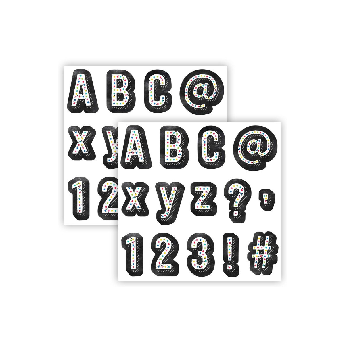 Add color and playfulness to your signs and bulletin board headlines with the bright dots on the Colorful Chalk Designer Letters