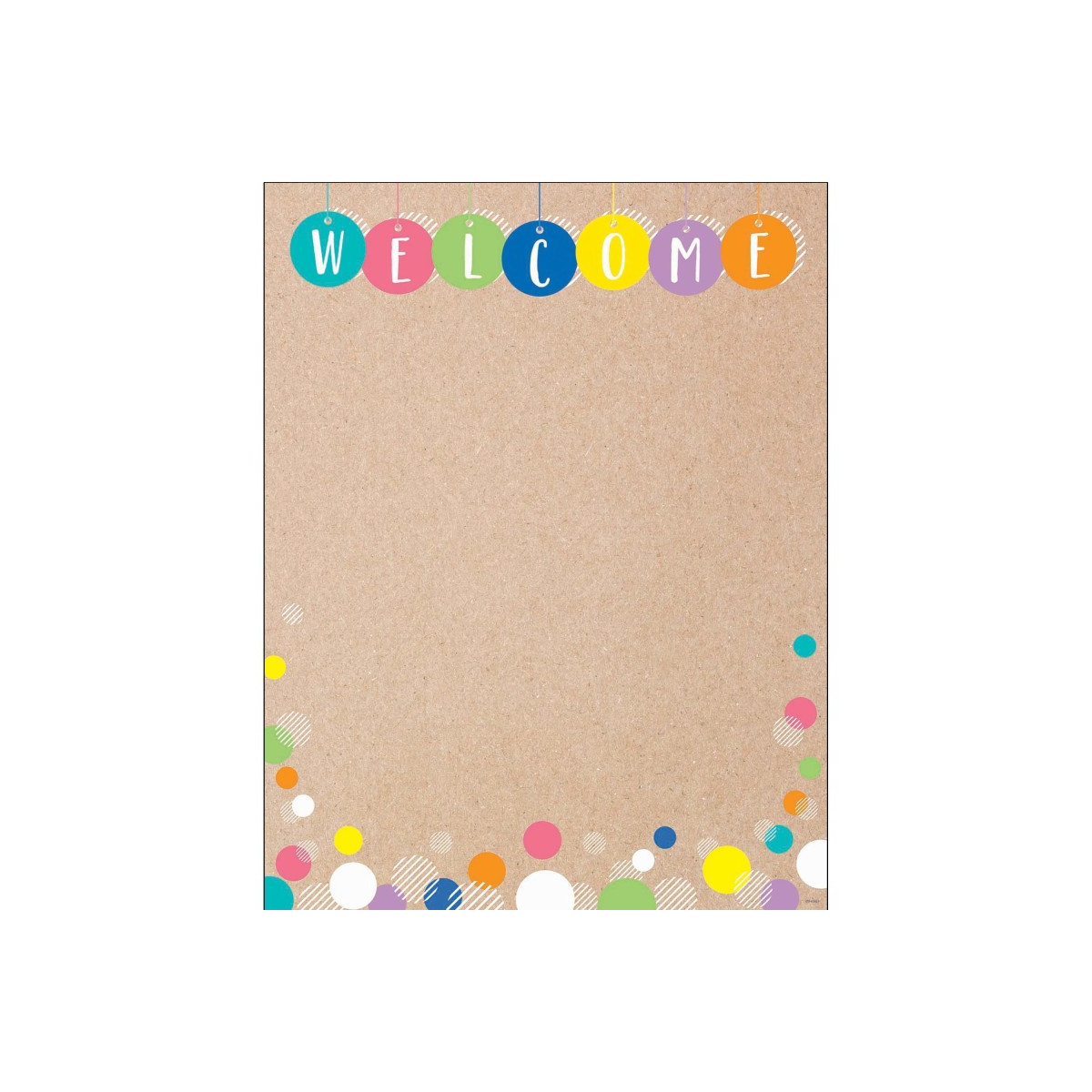 The Krafty Pop Welcome Chart features colorful dots on a kraft-style background that will liven up any classroom. It includes ample space for writing a customized message and will complement a wide variety of classroom themes and decor. Chart measures 17" x 22". Back of Krafty Pop Welcome Chart includes an activities page with directions for how to use the three 8-1/2" x 11 reproducibles also included: Bingo (game grid for Names Bingo game)