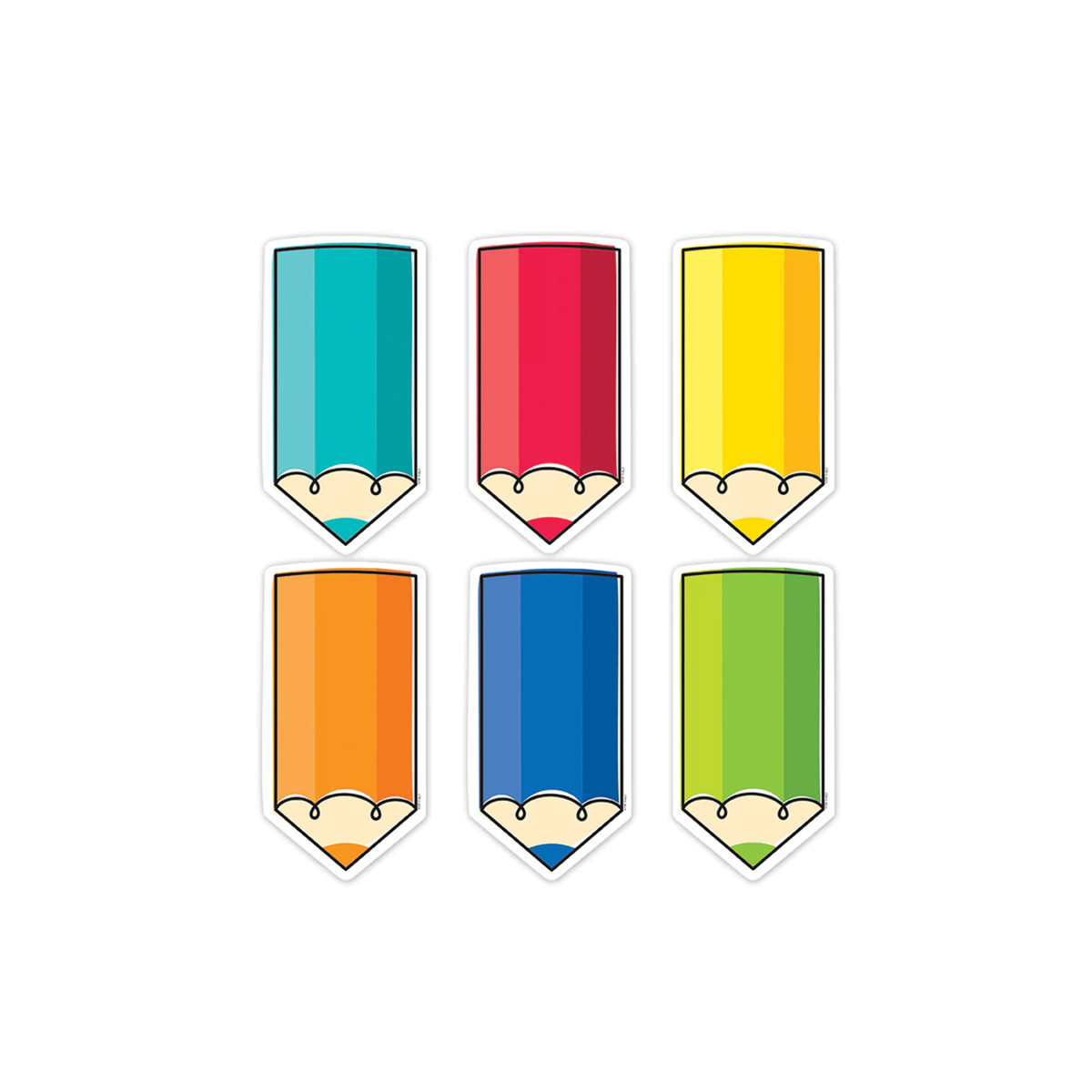 Bring a rainbow of color to the walls of your learning environment with the big, chunky pencils in the Colorful Doodle Pencils 6" Designer Cut-Outs. Use these versatile cut-outs for crafting projects, displaying artwork, making covers for mini books, making flash cards, creating small classroom signs, sending notes home to parents, and more! They also make great labels on cubbies, student folders, supply bins, and binders. Each pack includes 72 cut-outs, 12 each of 6 designs.
