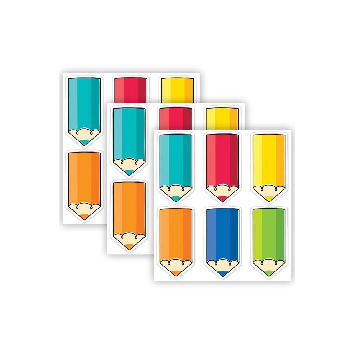 Bring a rainbow of color to the walls of your learning environment with the big, chunky pencils in the Colorful Doodle Pencils 6" Designer Cut-Outs. Use these versatile cut-outs for crafting projects, displaying artwork, making covers for mini books, making flash cards, creating small classroom signs, sending notes home to parents, and more! They also make great labels on cubbies, student folders, supply bins, and binders. Each pack includes 72 cut-outs, 12 each of 6 designs. Sold as 3 packs for a total of 216 cut-outs.