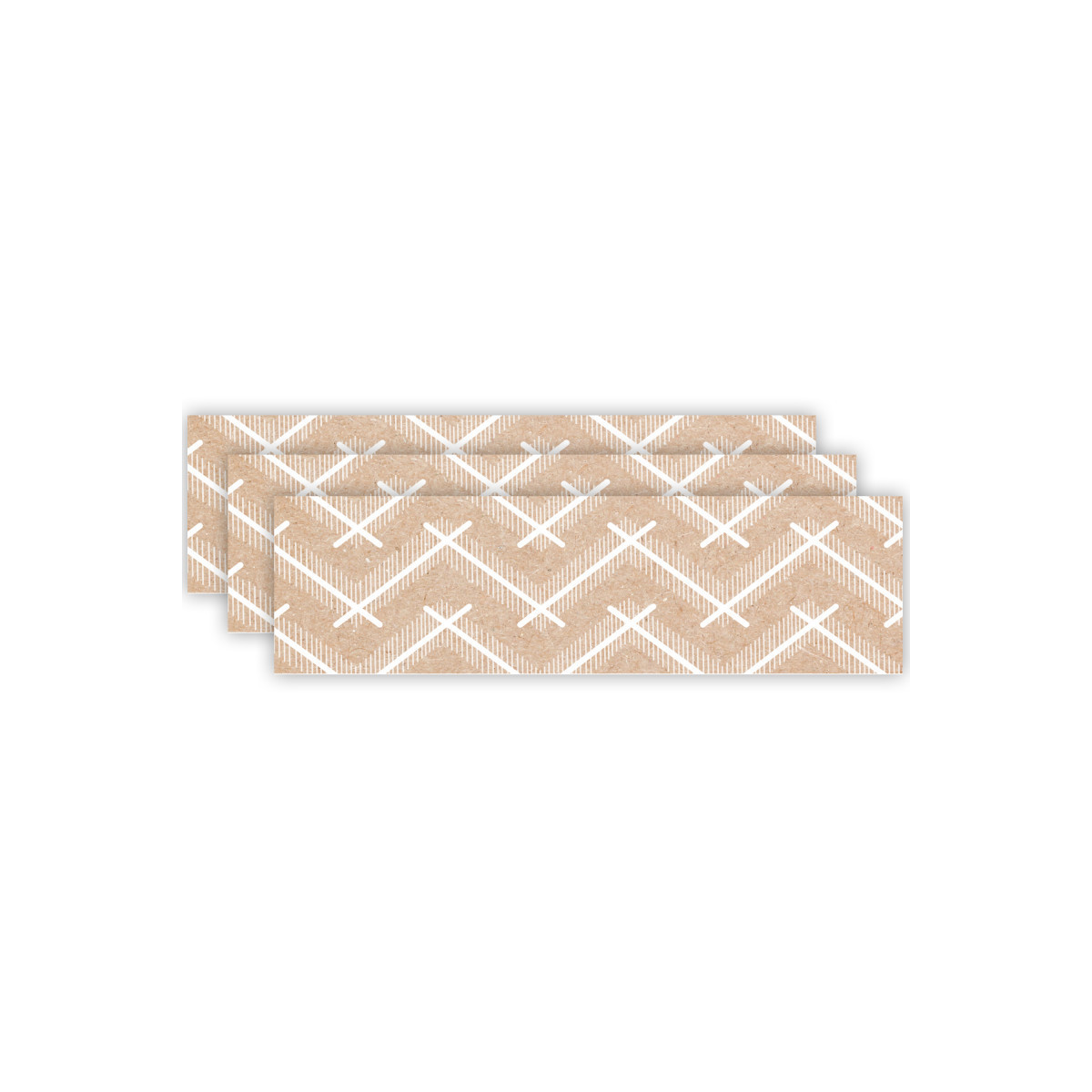 Add a creative touch to your bulletin board displays with the Kraft Chevron EZ Border, which features a white chevron pattern on a kraft-style background. Perfect for use on bulletin boards in a wide variety of classroom, office, and school settings. These EZ borders come in smaller strips, which are easier to manage and store. Each package comes with enough borders to complete 2 full bulletin boards. Strips measure 3" x 24". Each pack includes 24 strips for a total of 48 feet. Sold as 3 packs for a total of 72 strips (144 feet).