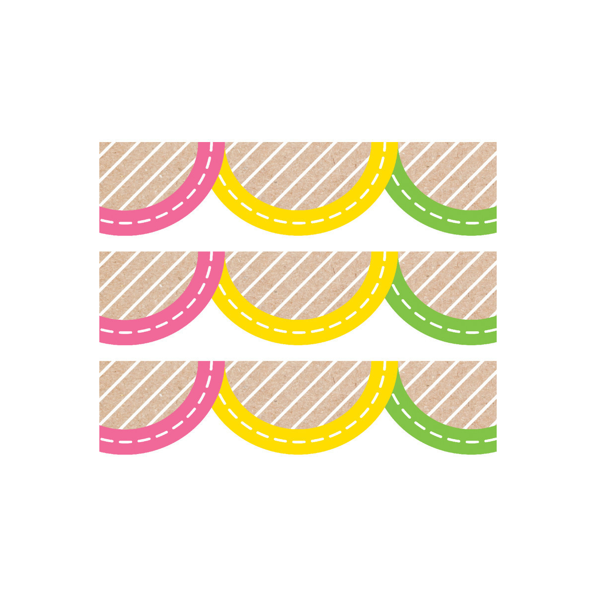 Dress up bulletin boards, rooms, hallways, and common areas with this Colorful Kraft Jumbo Scallops EZ Border.