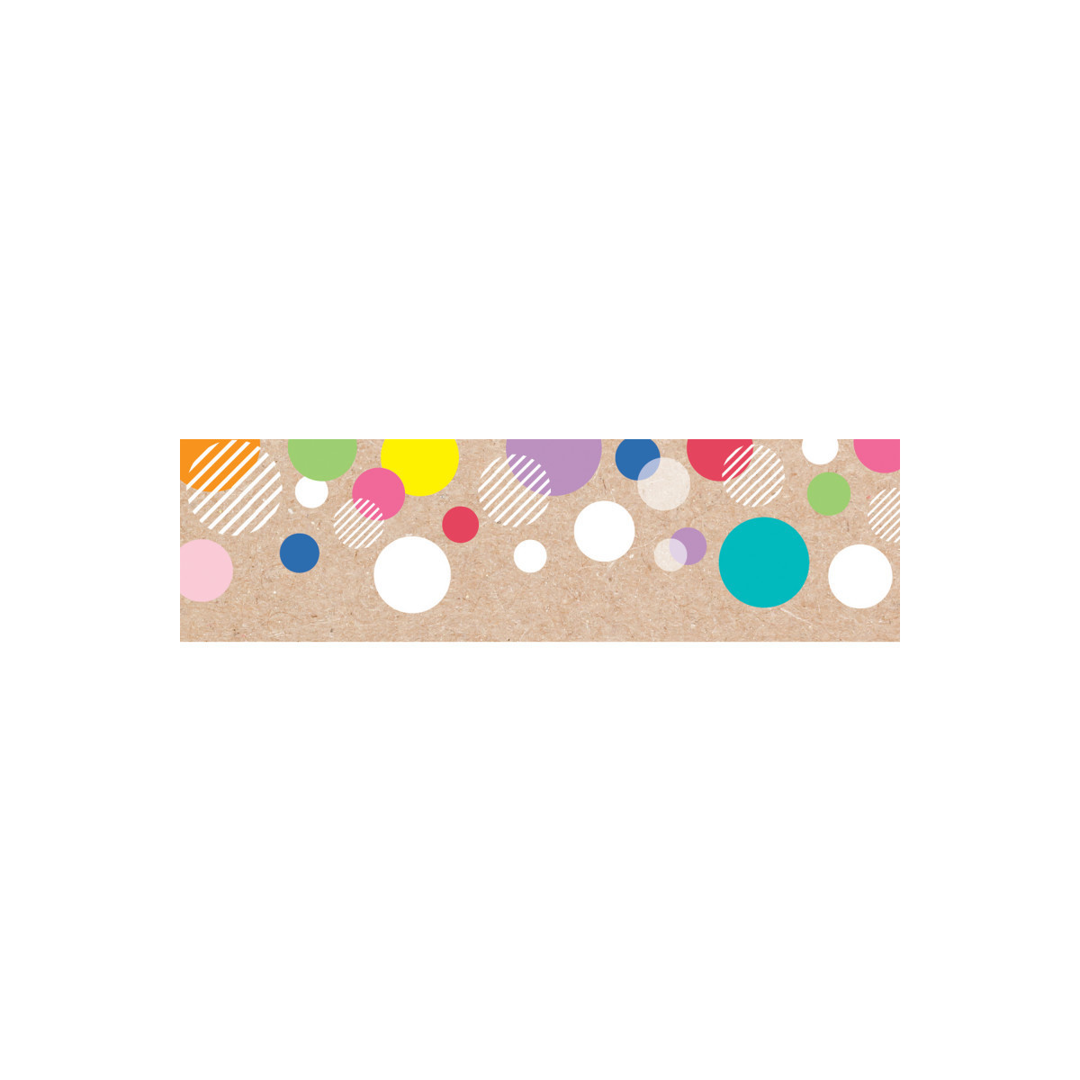 Featuring dots in a random array of colors on a kraft–style background, this border will brighten any space.