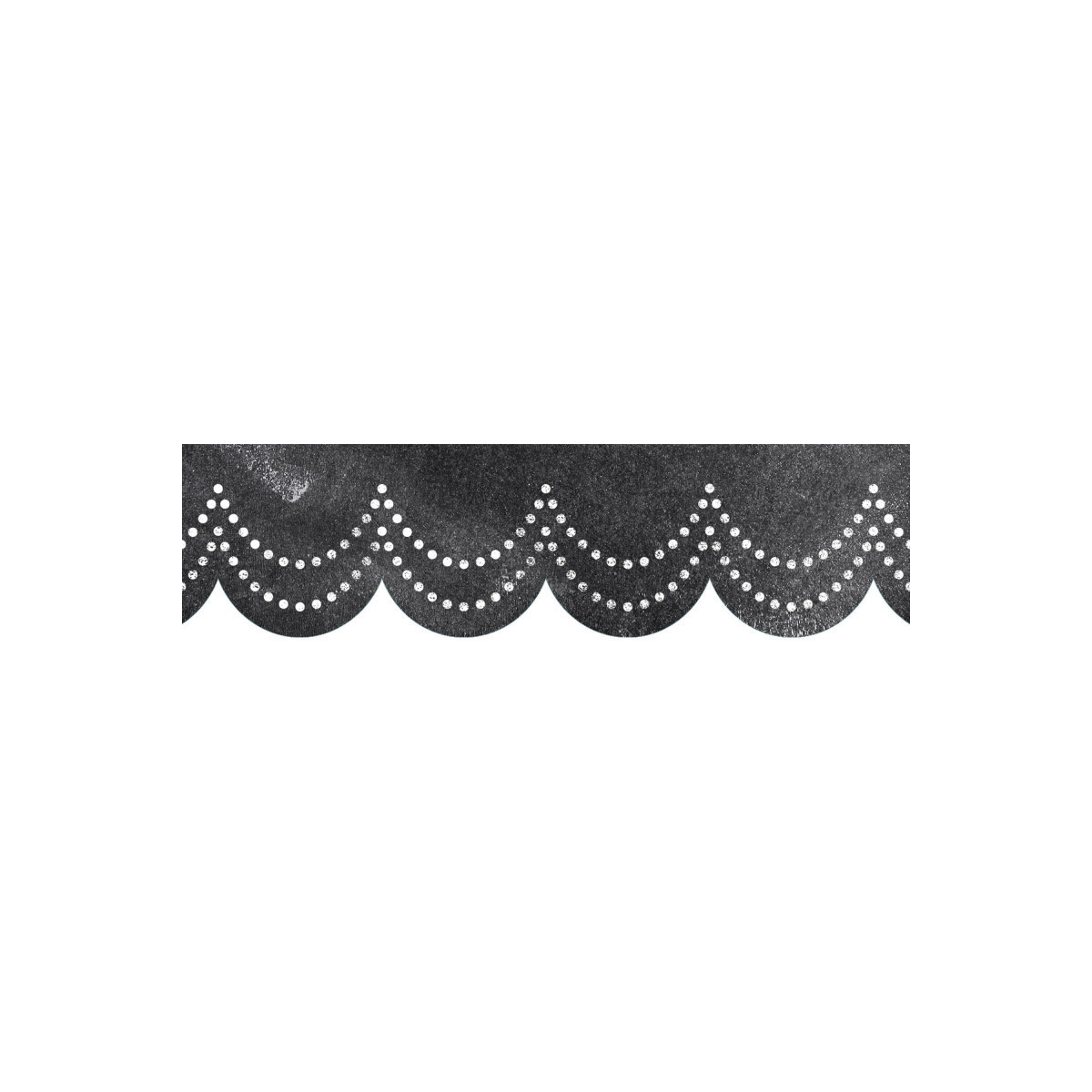 Add a touch of elegance to your wall displays with the Dotted Scallops EZ Border. This border features the look of beaded garland on a chalk-style background. Perfect for use on bulletin boards in a wide variety of classroom, office, and school settings. These EZ borders come in smaller strips, which are easier to manage and store. Each package comes with enough borders to complete 2 full bulletin boards. Strips measure 3" x 24". Each pack includes 24 strips for a total of 48 feet.
