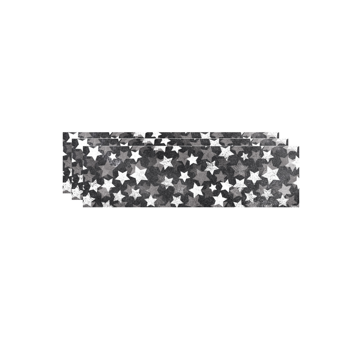 Recognize all-star student achievement by framing displays of student work with the Chalk Stars EZ Border. This border features playful stars on a chalk-style background. Perfect for use on bulletin boards in a wide variety of classroom, office, and school settings. These EZ borders come in smaller strips, which are easier to manage and store. Each package comes with enough borders to complete 2 full bulletin boards. Strips measure 3" x 24". Each pack includes 24 strips for a total of 48 feet. Sold as 3 packs for a total of 72 strips (144 feet).