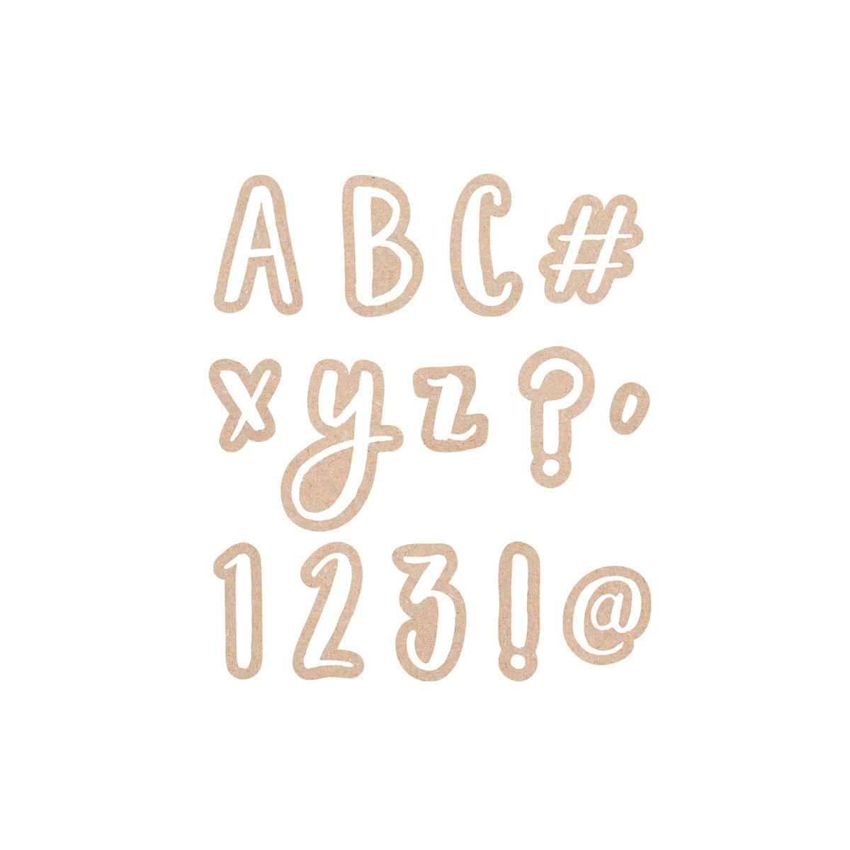 Add style to any display with these bold white letters on a kraft-style background. The 212 pieces in this set feature upper and lowercase letters, punctuation marks, numbers, and social media symbols. The casual look of these punch-out letters makes them a perfect choice for bulletin boards or displays in a school, office, dormitory, church, or daycare center. Also great for creating banners, party signs and more! Measures approximately 4"h.
