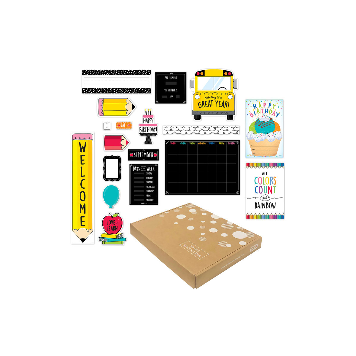 - MULTIPLE USES – The pieces in this pack are great for highlighting student work, welcoming visitors, teaching the calendar, and celebrating birthdays, in style.