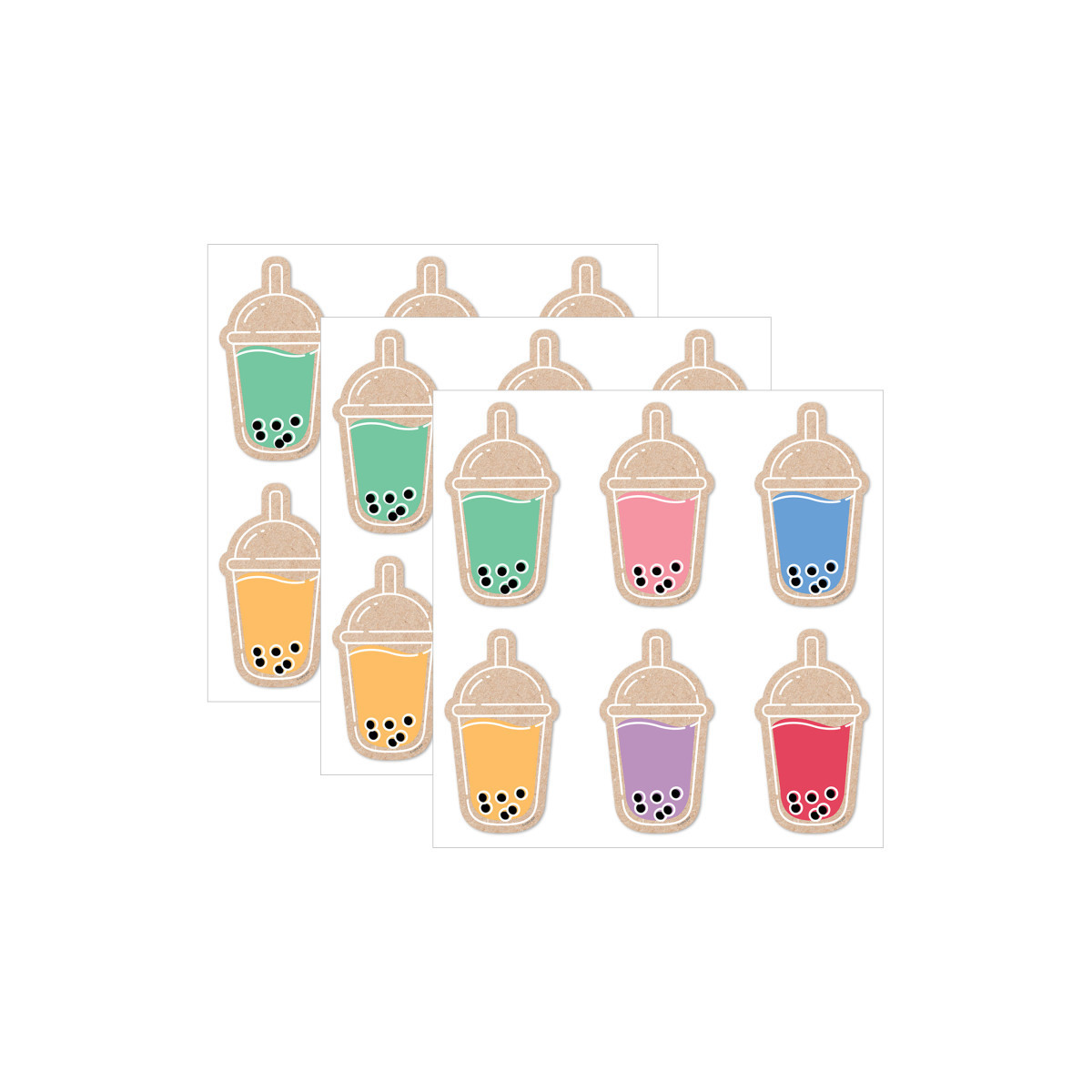 Add a taste of fun to your learning environment with the Boba Cups 6" Designer Cut-Outs. These depictions of kids' favorite sweet drinks come in 6 colorful flavors and offer a refreshing look for class messages, writing assignments, learning center activities, accenting bulletin boards, and more! They also make great labels on cubbies, student folders, supply bins, and binders. Each pack includes 36 pieces, 6 each of 6 designs measuring 5.675"w x 5.725"h: Teal, Pink, Blue, Orange, Purple, and Red Boba Cups. Coordinates with Krafty Pop! products. Sold as 3 packs for a total of 108 cut-outs.