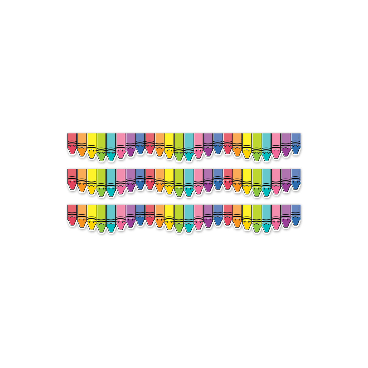 FUN AND FESTIVE DESIGN – This border's rainbow of colorful crayons will brighten any room.