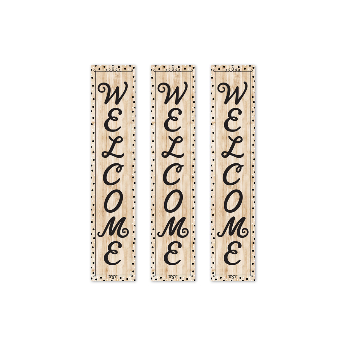 WELCOME – The vertical message on this banner offers a big welcome that is perfect for greeting a new class of students or visitors on back-to-school night or open house.