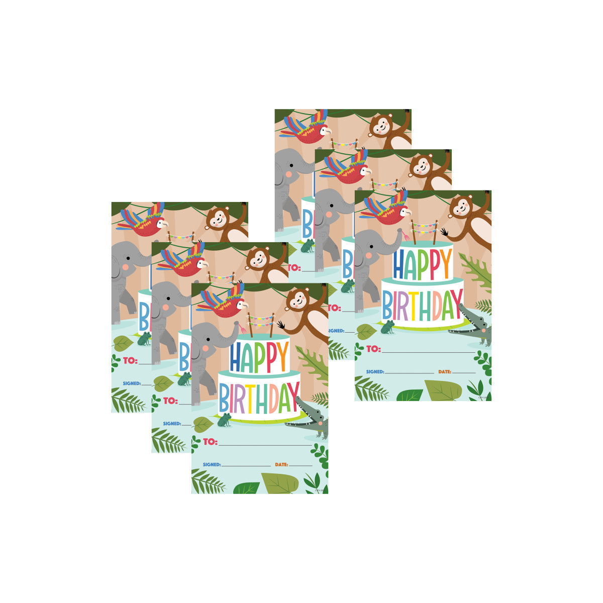 Celebrate birthdays with these colorful awards featuring our fun Jungle Friends. Awards are printed on sturdy paper stock so students can enjoy them for years to come. Coordinates with Jungle Friends products. Measures 5-1/2" x 8-1/2". Each pack includes 30 colorful awards. Sold as 6 packs for a total of 180 awards.