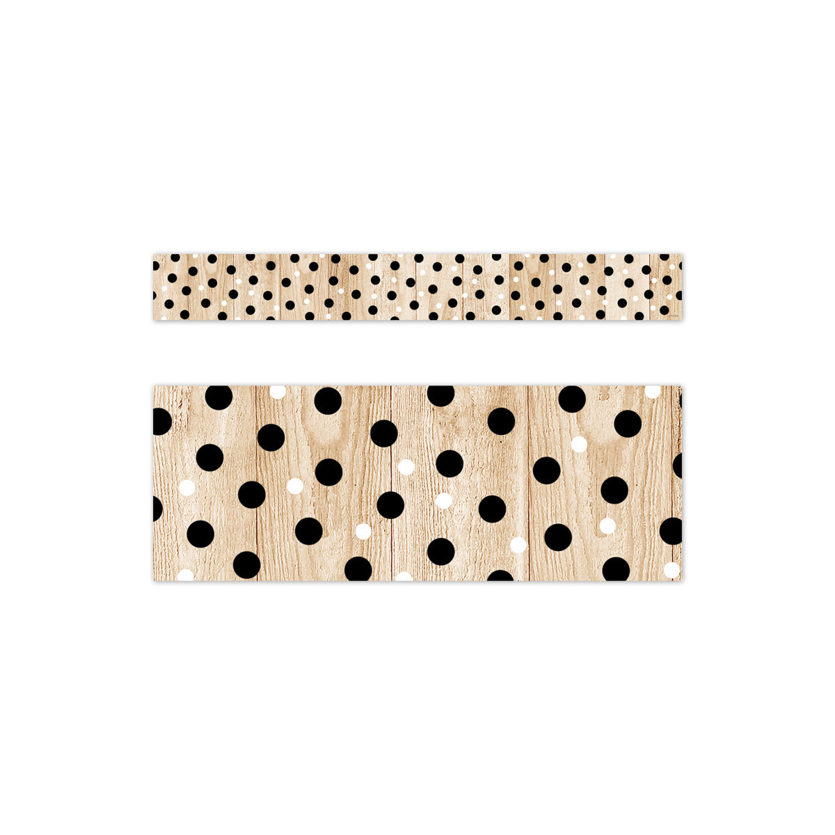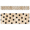 STYLISH DESIGN – This border features black and white polka dots on a wood-patterned background that will add a touch of style to any bulletin board display.