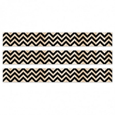 STYLISH DESIGN – This border features a black and wood chevron pattern that will add a touch of style to any bulletin board display.