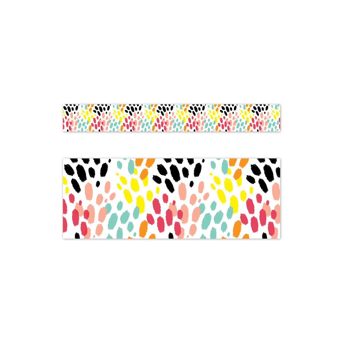 The colorful animal tracks on this Messy Tracks EZ Border will add a splash of fun to any bulletin board display. The festive pattern goes great with Décor from our Jungle Friends Collection and many other design themes. This EZ Border comes in smaller strips, which are easier to manage and store. Each package comes with enough border to complete 2 full bulletin boards. Each pack includes 24 strips measuring 3" x 24" for a total of 48 feet per package.