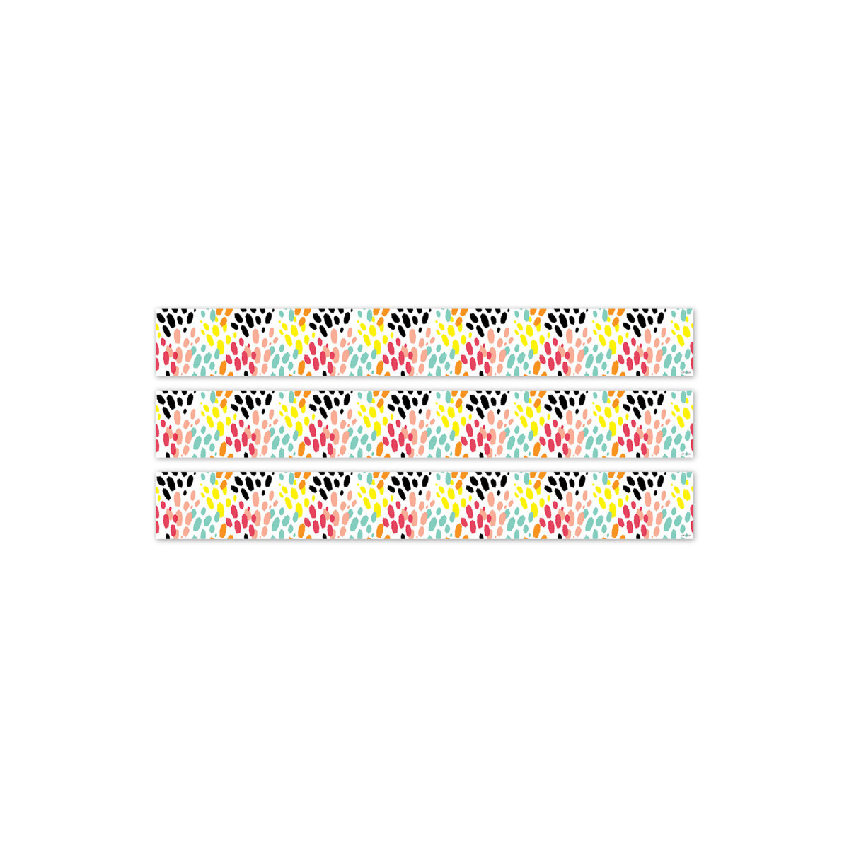 The colorful animal tracks on this Messy Tracks EZ Border will add a splash of fun to any bulletin board display. The festive pattern goes great with Décor from our Jungle Friends Collection and many other design themes. This EZ Border comes in smaller strips, which are easier to manage and store. Each package comes with enough border to complete 2 full bulletin boards. Each pack includes 24 strips measuring 3" x 24" for a total of 48 feet per package. Sold as 3 packs for a total of 72 strips (144 feet).