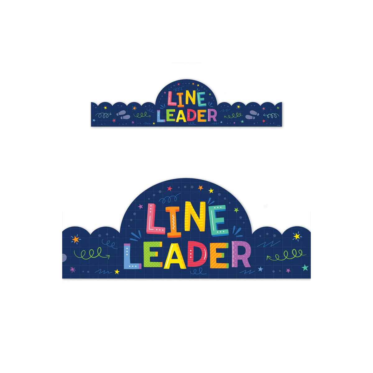 The Line Leader crown is an eye-catching accessory that empowers students to take charge when leading their classmates in line. Brightly decorated and easy to wear, this crown instills a sense of responsibility, making the role of line leader meaningful. The student chosen to wear the crown each week will feel confident as they guide their classmates, fostering a sense of teamwork. Since the line leader role typically rotates as part of classroom jobs, this crown ensures that each student has the opportunity to shine in this leadership role, making the experience exciting and rewarding for everyone. Crowns measure 24" x 6". Each pack includes 30 adjustable crowns. Coordinates with Core Decor products.