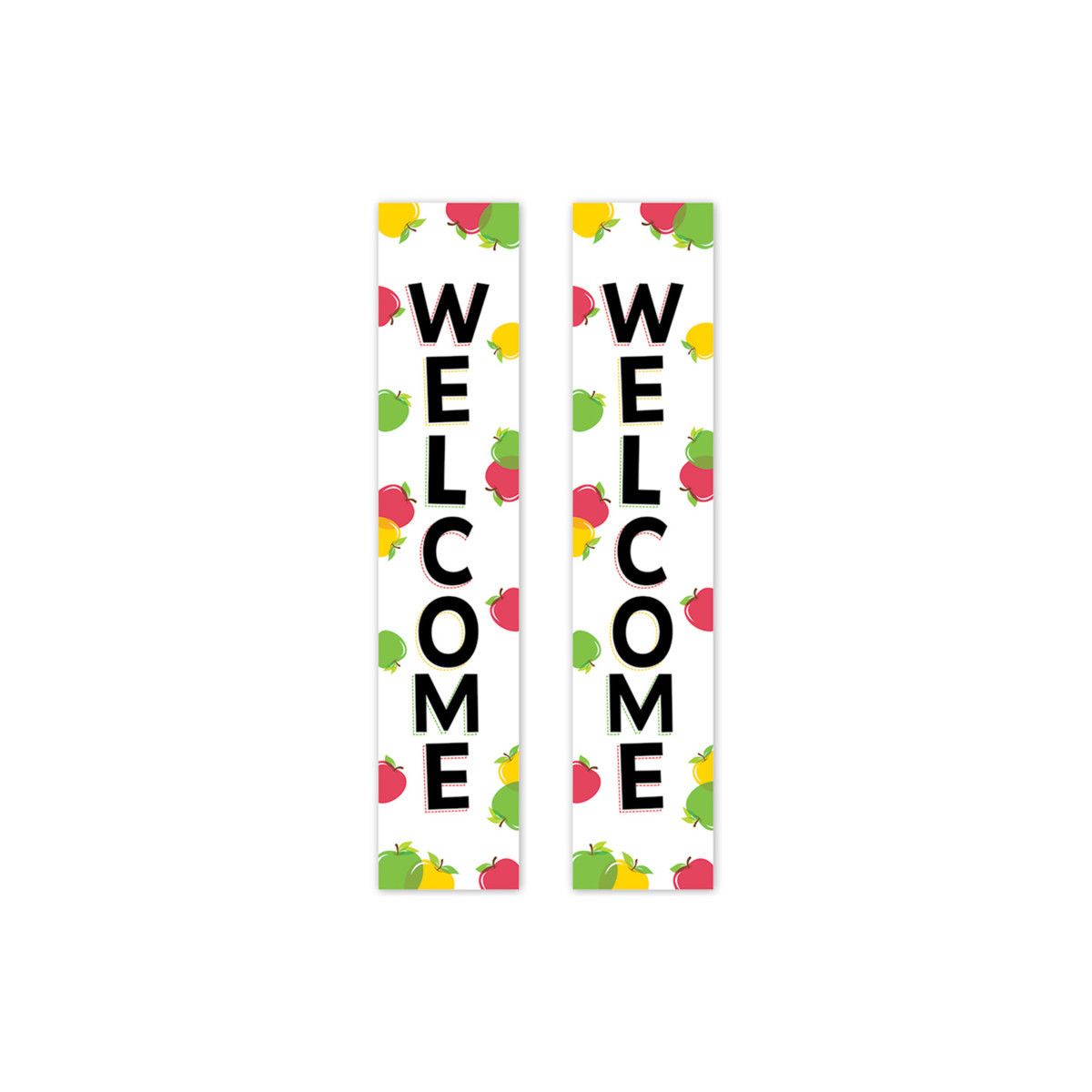 WELCOME – The vertical message on this banner offers a big, friendly welcome that is perfect for displaying on doors to greet a new class of students or visitors on back-to-school night or open house.