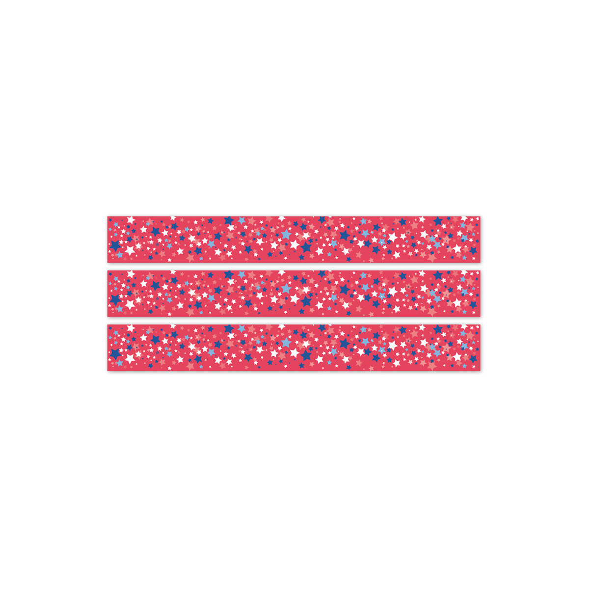 This Patriotic Stars EZ Border features blue and white stars on a red background for a dazzling addition to any bulletin board display. Use the border by itself or layer it with another border for a unique look. Perfect for use on bulletin boards in a wide variety of classroom, office, and school settings. Each package comes with enough borders to complete 2 full bulletin boards. Each pack includes 24 strips measuring 24" each for a total of 48 feet. Sold as 3 packs for a total of 72 strips (144 feet).