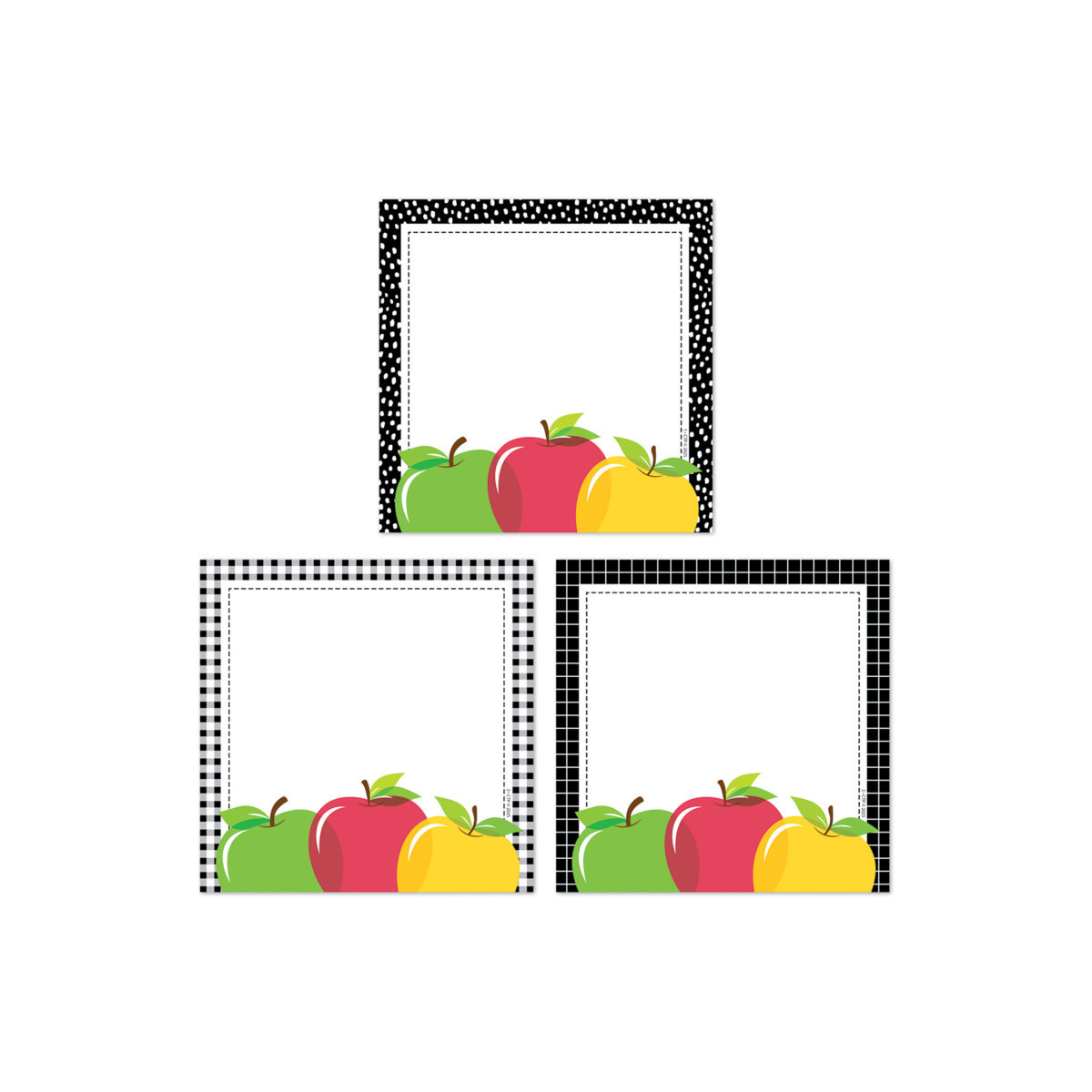 - VERSATILE APPLES DESIGN – The colorful apples and stylish black border on a white background make these cut-outs compatible with just about any other colors, designs, and themes. Perfect for bulletin boards, classrooms, hallways, offices, and common areas!
