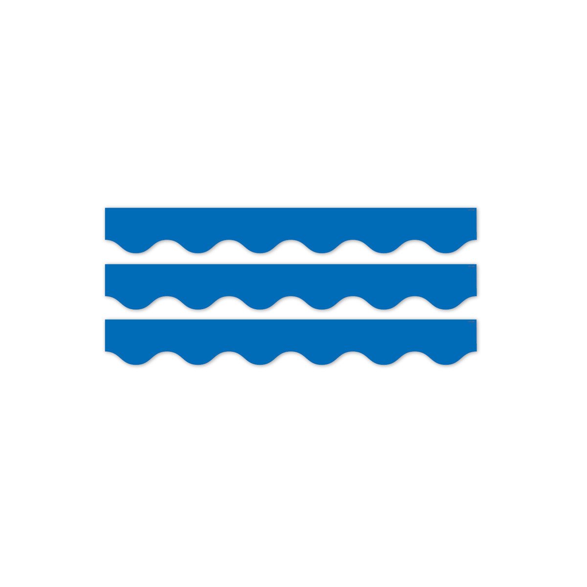 Frame your bulletin boards in style with this Blue Wavy EZ Border. Use the border by itself or layer it with another border for a unique look. Perfect for use on bulletin boards in a wide variety of classroom, office, and school settings. Each package comes with enough borders to complete 2 full bulletin boards. Each pack includes 24 strips measuring 24" each for a total of 48 feet. Sold as 3 packs for a total of 72 strips (144 feet).