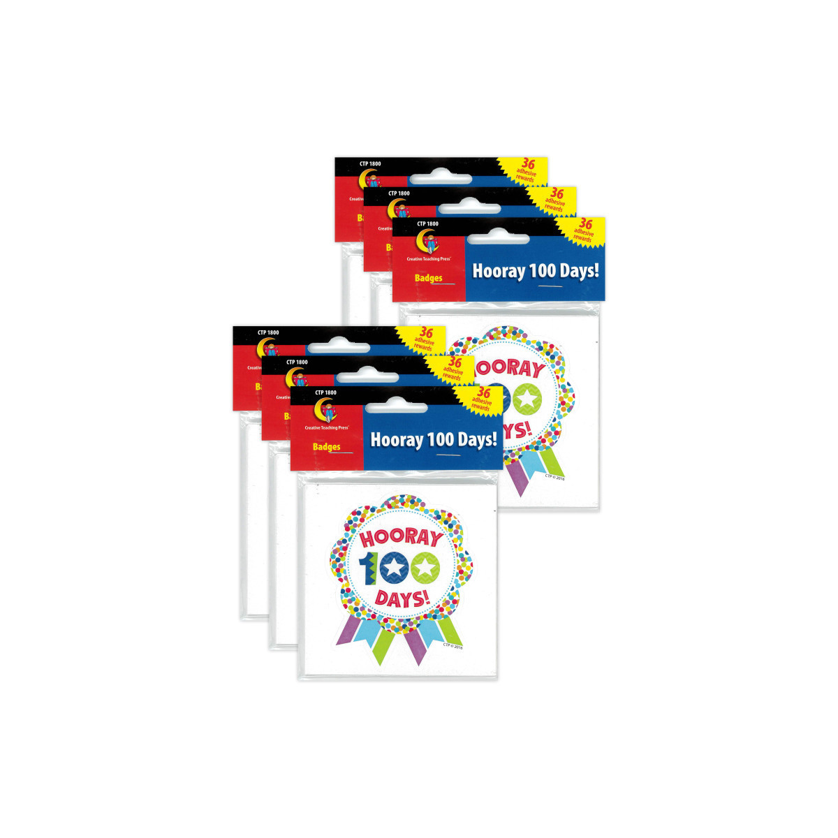 Celebrate completing 100 Days of School with these fun Hooray 100 Days sticker badges! Students will proudly wear these color badges all day long to celebrate this milestone. Parents will enjoy seeing students come home with their badge and be excited to hear about their 100th Day of School festivities. Acid-free. Badges measures approximately 3" x 2.5". Each pack includes 36 adhesive badges. Sold as 6 packs for a total of 216 badges.