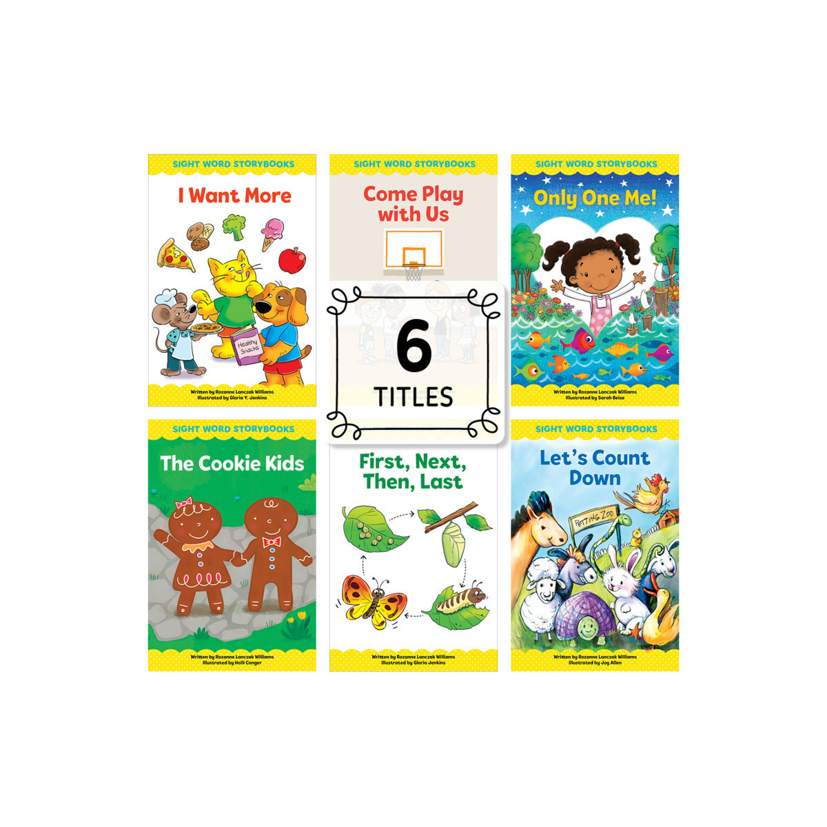 Set comes with one each of the following titles: I Want More, Come Play with Us, Only One Me!, The Cookie Kids, First, Next, Then, Last, and Let's Count Down.