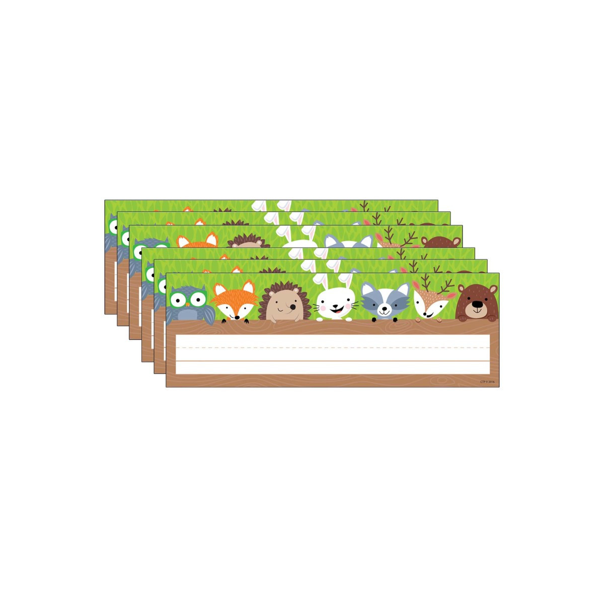 This Woodland Friends name plate features cute woodland creatures (owl, fox, hedgehog, rabbit, raccoon, deer, and bear) peeking out from behind a log. Name plates can be used to personalize student desks, cubbies, seats at the table, take-home bags, classroom cabinets, folders and more! Name plates measure 9.5" x 3.25". Each pack includes 36 name plates. Sold as 6 packs for a total of 216 name plates.