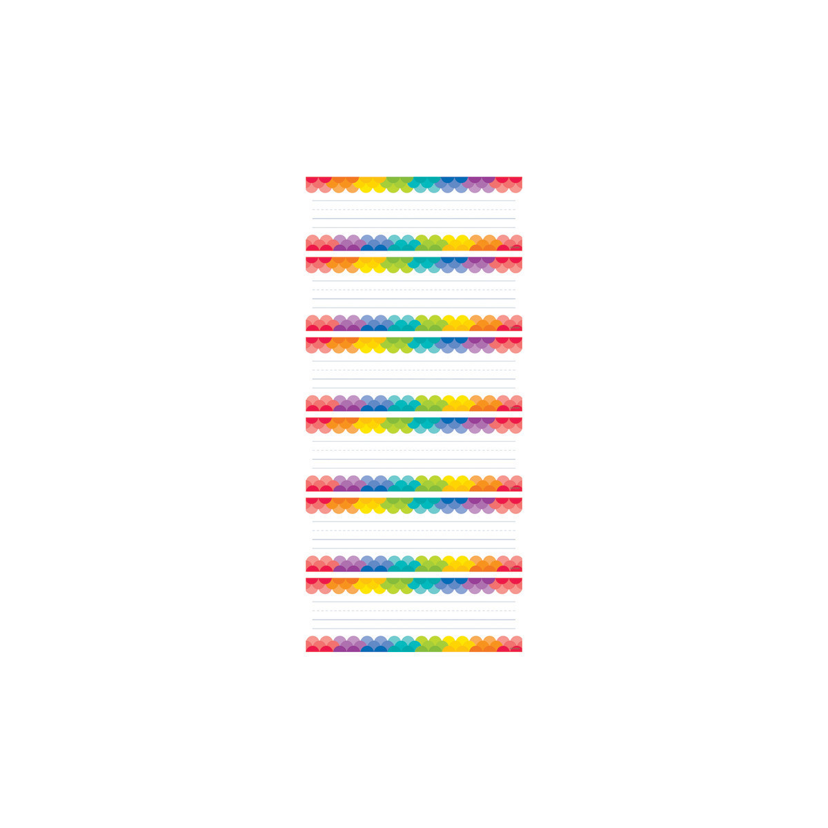 These colorful Rainbow Scallops name plates will accent just about any classroom theme. Name plates can be used to personalize student desks, cubbies, seats at the table, take-home bags, classroom cabinets, folders, library book boxes and more! Student name plates are a must-have for any classroom. Name plates measure 9.5" x 3.25". Each pack includes 36 name plates. Sold as 6 packs for a total of 216 name plates.