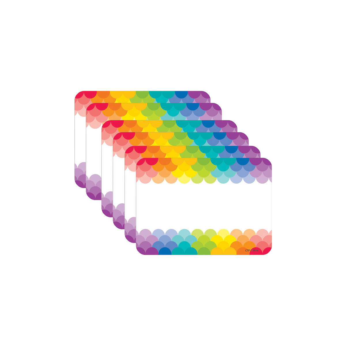 These Rainbow Scallops labels are colorful and versatile to use at school, home and the office! They make great name tags for first day of school, field trips, open house, back-to-school night, parent visitations, class parties and more! These labels are also perfect for organizing all around the classroom and office. Use them for labeling storage bins, supply containers, book libraries, binders/folders and more. Measures 3.5" x 2.5". Each pack includes 36 self-adhesive labels. Sold as 6 packs for a total of 216 name tags.