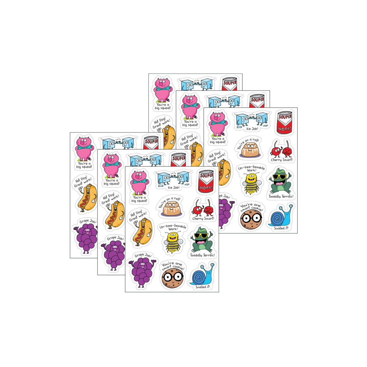 So Much Pun! is a décor collection that highlights the humorous use of words and phrases that are alike or nearly alike in sound but different in meaning. The SMP collection uses wordplay to bring a fun and lighthearted vibe to the classroom that students and teachers will love. Sticker measures approximately 1.25" to 2". Acid-free. Each pack includes 55 stickers. Sold as 6 packs for a total of 330 stickers.