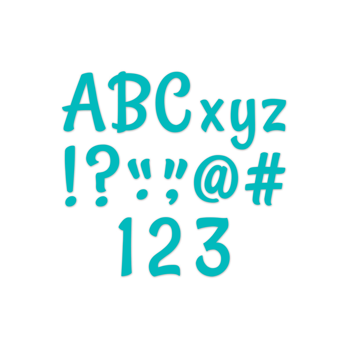A fun, fresh twist on solid black letters! These Stylish Turquoise 4" Designer Letters feature a playful, hand-lettered feel. This package contains 235 pieces, including upper- and lowercase letters, punctuation marks, and symbols. The casual design of these punch-out letters makes them versatile for use on any bulletin board or display in a school, office, college dorm, senior living residence, church, or daycare center.