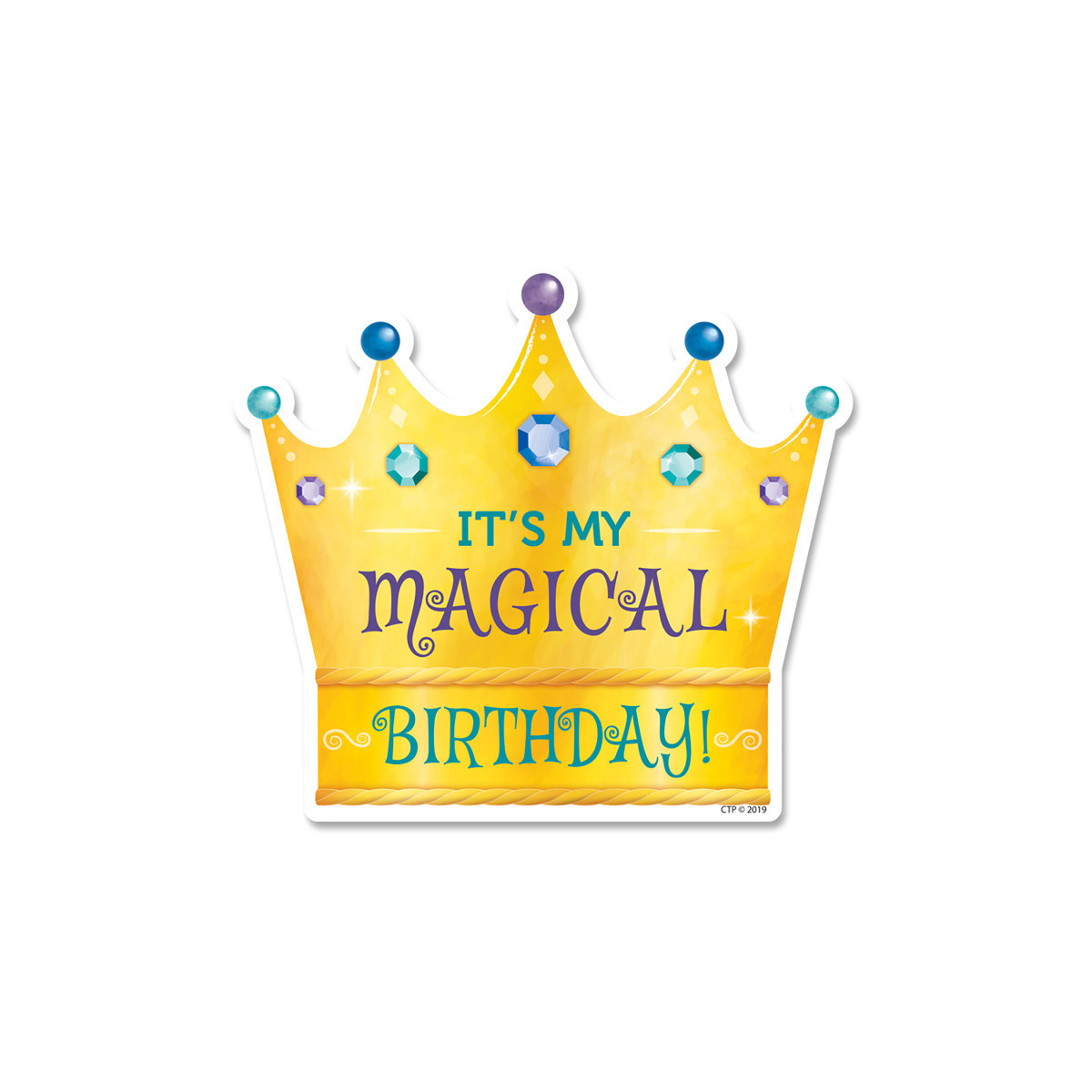 Students will love wearing this Mystical Magical It's My Birthday Badge sticker. Students will proudly wear this colorful crown sticker all day long to celebrate their special day. Parents will enjoy seeing their child come home with the badge and be excited to hear about their child's special day at school. Measures approximately 3.25" x 3.25". Each pack includes 36 adhesive, acid-free stickers.